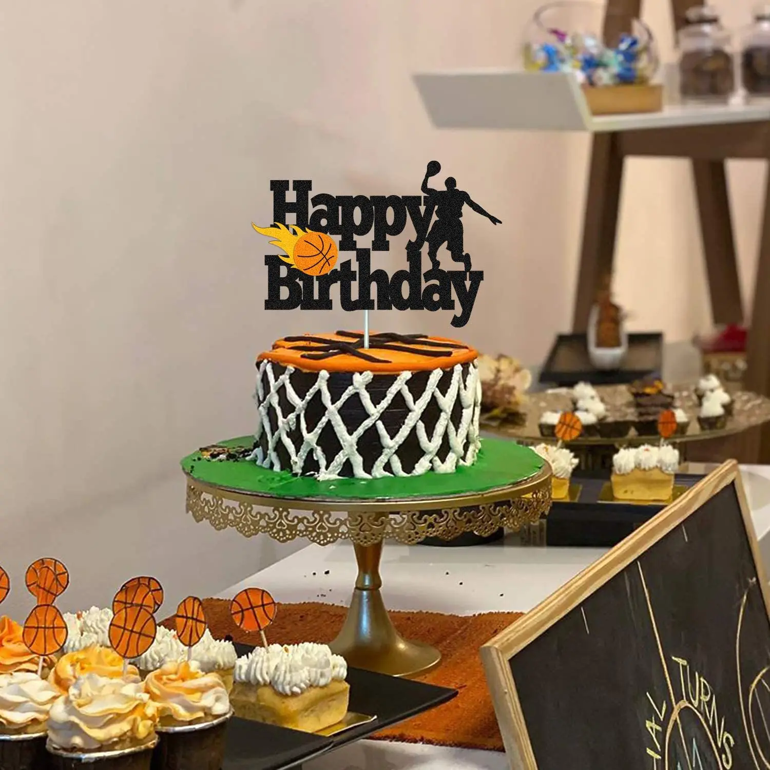 Décoration Fête Enfant Décoration Gâteau Anniversaire Thème Basket - Happy Birthday - 11x14,9 Cm - Pour Cupcakes Et Desserts Décoration Cupcake Sport