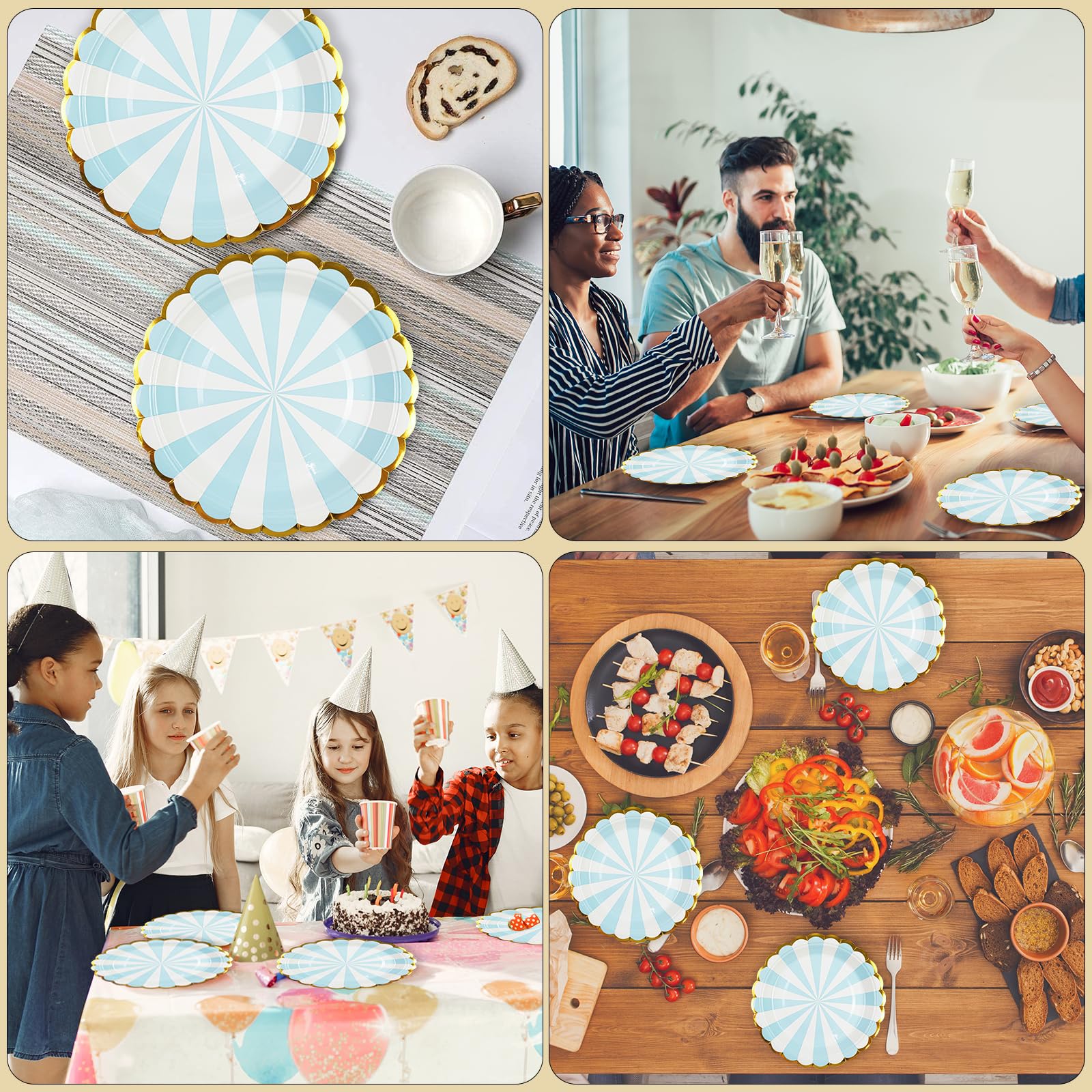 Assiettes Jetables Festonnées Service De Table Jetable 125 Pièces Bleu à Carreaux - Pour Fête, Anniversaire, Mariage Service Table Jetable 125 Pièces Bleu