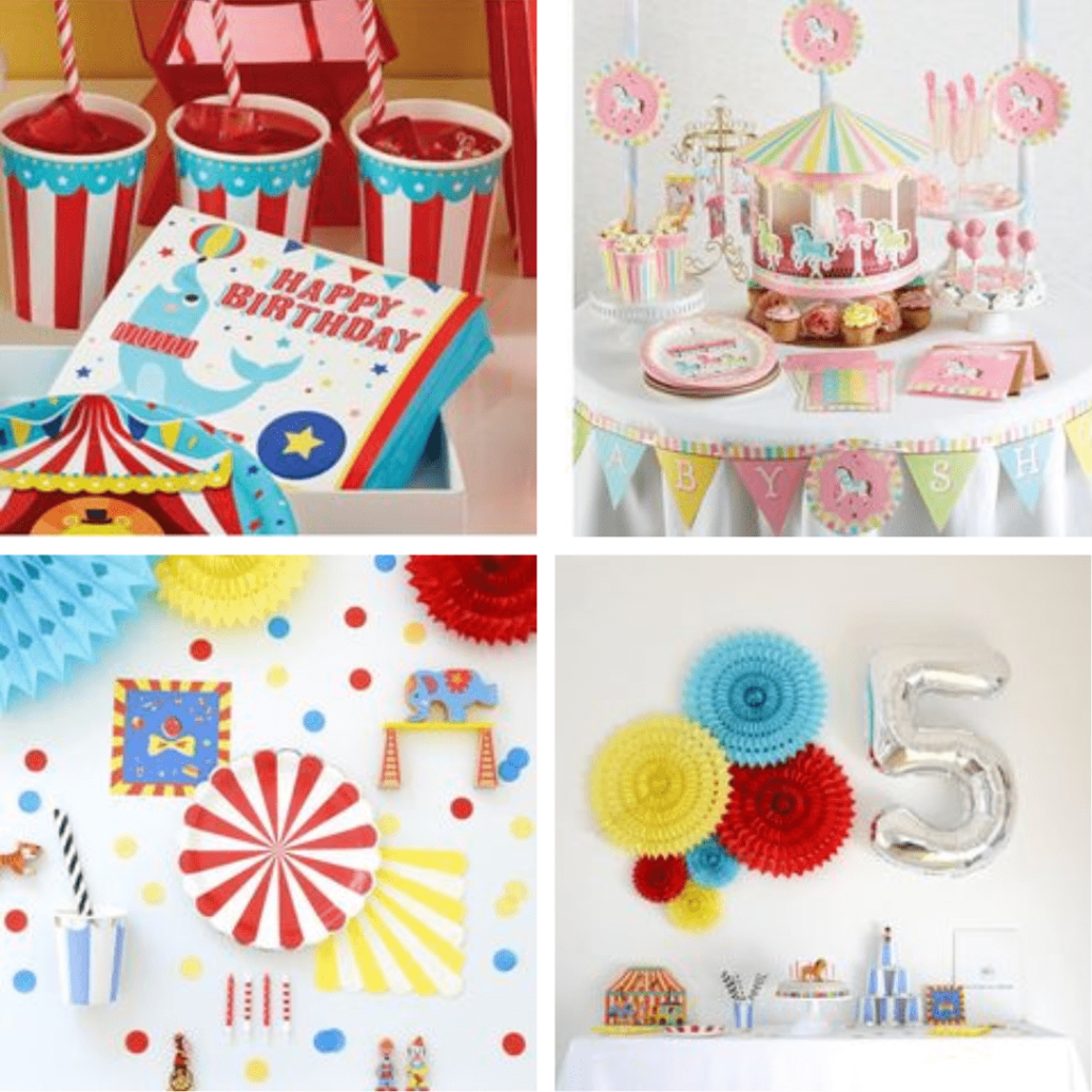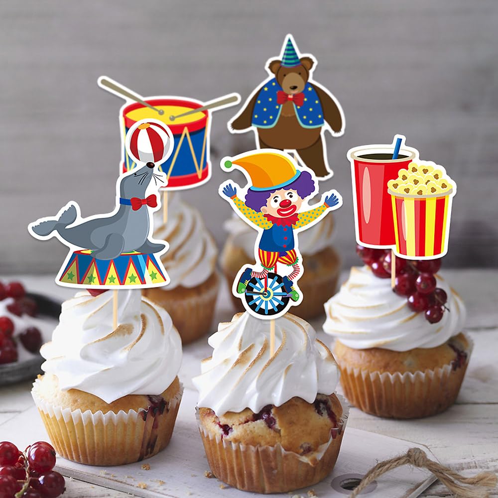 Décorations Gâteau Cirque Anniversaire - Lot Avec Drapeaux, Figurines Clown, Lion, éléphant