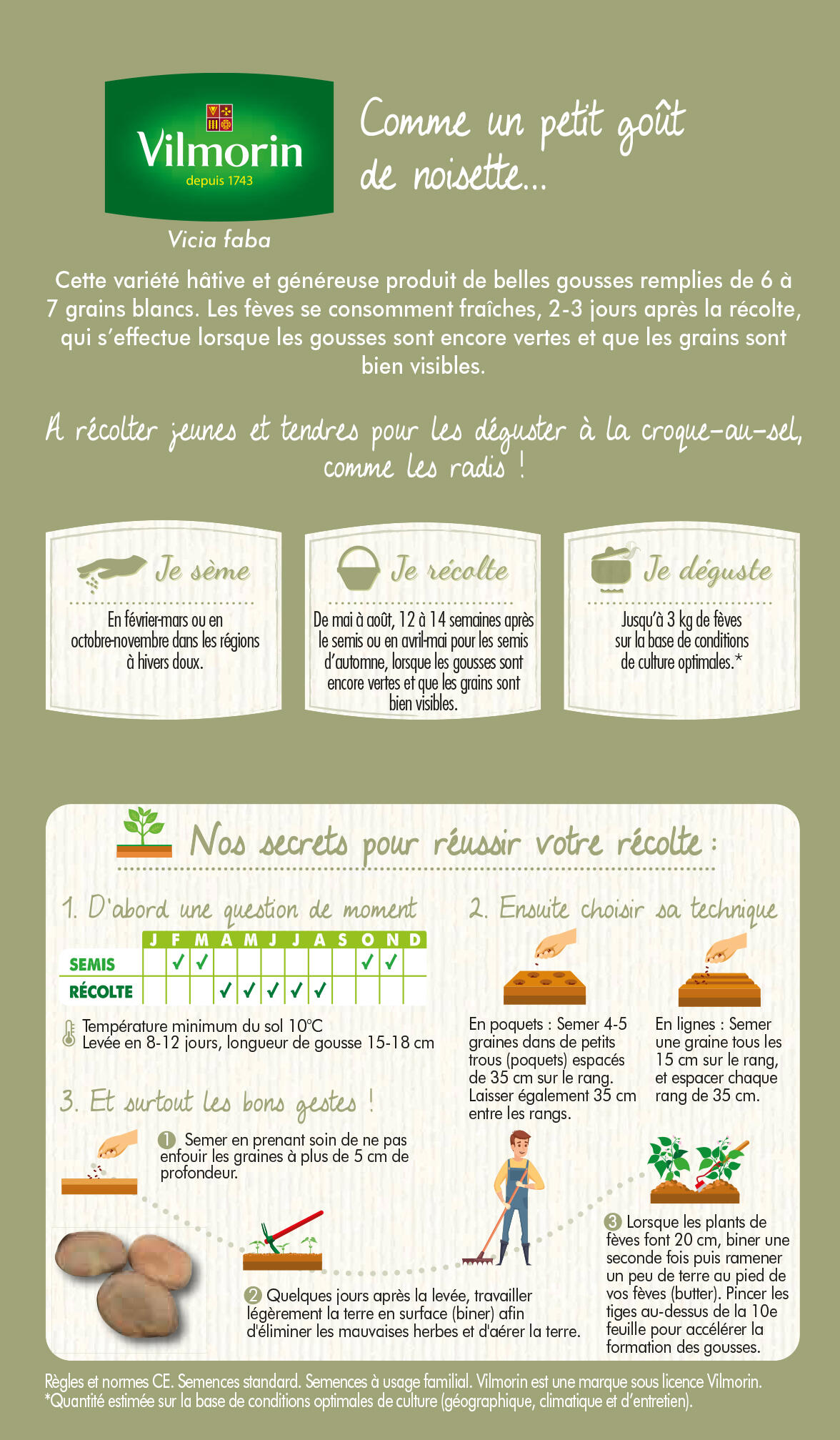 Côté culture, c’est un jeu d’enfant. Les fèves font partie de la famille des Fabacées, comme les haricots ou les pois, et elles sont très rustiques. Vous pouvez les semer d’octobre jusqu’en février, ce qui est plutôt large, et vous récolterez d’avril à août. Pratique, non ?