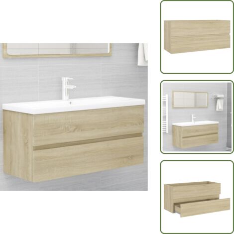 Armoire D'évier De Salle De Bain VidaXL En Chêne Noir - 100x38.5x45 Cm - Bois D'ingénierie - Montage Mural Ou Posé