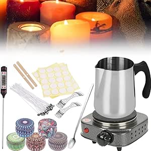 Fondoir à Bougies électrique 1L Avec écran LED - Kit Fabrication Bougies Incluant Mèches, Bâtons, Autocollants | 100W, Contrôle Température Précis