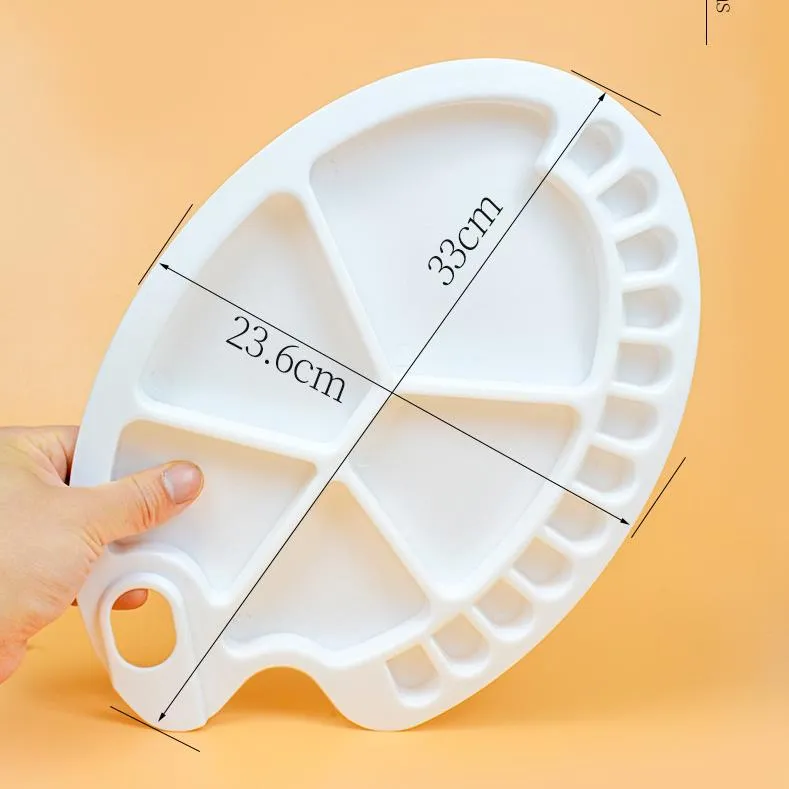 Ces palettes en plastique rondes, c'est l'outil indispensable pour tout peintre, débutant ou pro. Tu en as 5 dans le pack, chacune avec 7 puits pour tes couleurs et une grande surface lisse pour mélanger. Diamètre : 17 cm. Le plastique est non poreux, donc les couleurs ne sont pas absorbées et tu vois vraiment la teinte que tu crées. C'est super facile à nettoyer (à l'eau), et elles s'empilent pour un rangement compact. Léger, avec des bords arrondis pour un confort même pendant des heures de peinture. Compatible avec l'aquarelle, l'acrylique, l'huile, la gouache… Parfait pour les cours d'art, les projets DIY, ou le studio à la maison. Si tu veux des palettes pratiques, durables et pas chères, celles-ci sont une valeur sûre.