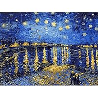 Kit Broderie Diamant 5D Van Gogh Ciel étoilé 70x55cm - Diamants Ronds, Toile Collante, Tout Inclus, Décoration Murale DIY