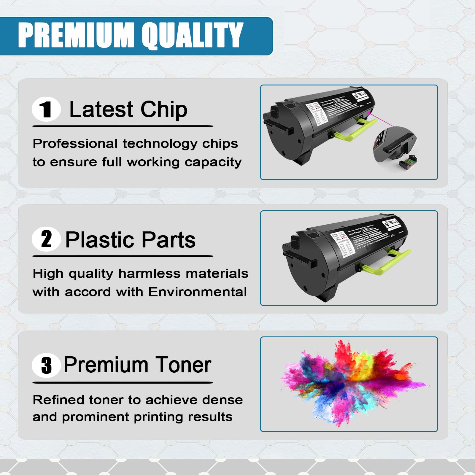 Votre imprimante Lexmark manque d'encre et vous cherchez une cartouche compatible fiable et moins chère que l'original ? Cette cartouche CAIDI B232000 est faite pour vous. Elle est compatible avec plusieurs modèles Lexmark récents, notamment les séries B2338dw, B2442dw, B2546dn/dw, B2650dn/dw, ainsi que les versions MB2338adw, MB2442adwe, etc. (vérifiez bien la liste avant d'acheter). C'est une cartouche noire, avec un rendement d'environ 3000 pages en couverture à 5% sur format A4 – de quoi tenir un bon moment, que ce soit pour le bureau ou un usage personnel intensif. La qualité d'impression est très correcte : le toner utilisé est de haute qualité, avec une bonne répartition des particules, ce qui donne des textes nets et des images bien contrastées, sans tâches ni grisaille. Le taux de transfert est élevé, donc peu de gaspillage de poudre. La cartouche est neuve, conditionnée individuellement dans une boîte protectrice, donc facile à stocker avant utilisation. Le remplacement est simple : il suffit d'ouvrir le compartiment de l'imprimante, de retirer l'ancienne cartouche et d'insérer celle-ci jusqu'au clic. Pas de puce à réinitialiser sur ces modèles généralement. Si vous imprimez beaucoup et que vous voulez réduire vos coûts sans sacrifier la qualité, cette cartouche compatible est une excellente option. Elle est souvent bien moins chère que l'originale, tout en offrant des performances très similaires. N'oubliez pas de recycler votre ancienne cartouche !