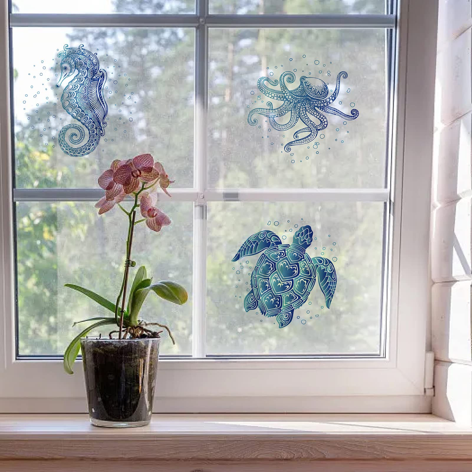 4 Autocollants Fenêtre Animaux Marins - Adhésifs Statiques Sans Colle - Pour éviter Les Collisions D'oiseaux - 16x16 Cm