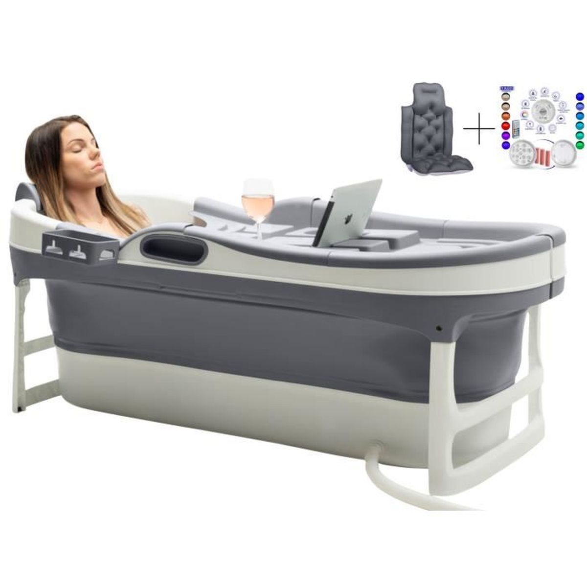 Baignoire Pliable Bébé XXL Grande Jusqu'à 18 Kg - Avec Accoudoirs, Pieds Antidérapants, Capacité 300L, Gris Baignoire Enfant 1 à 9 Ans