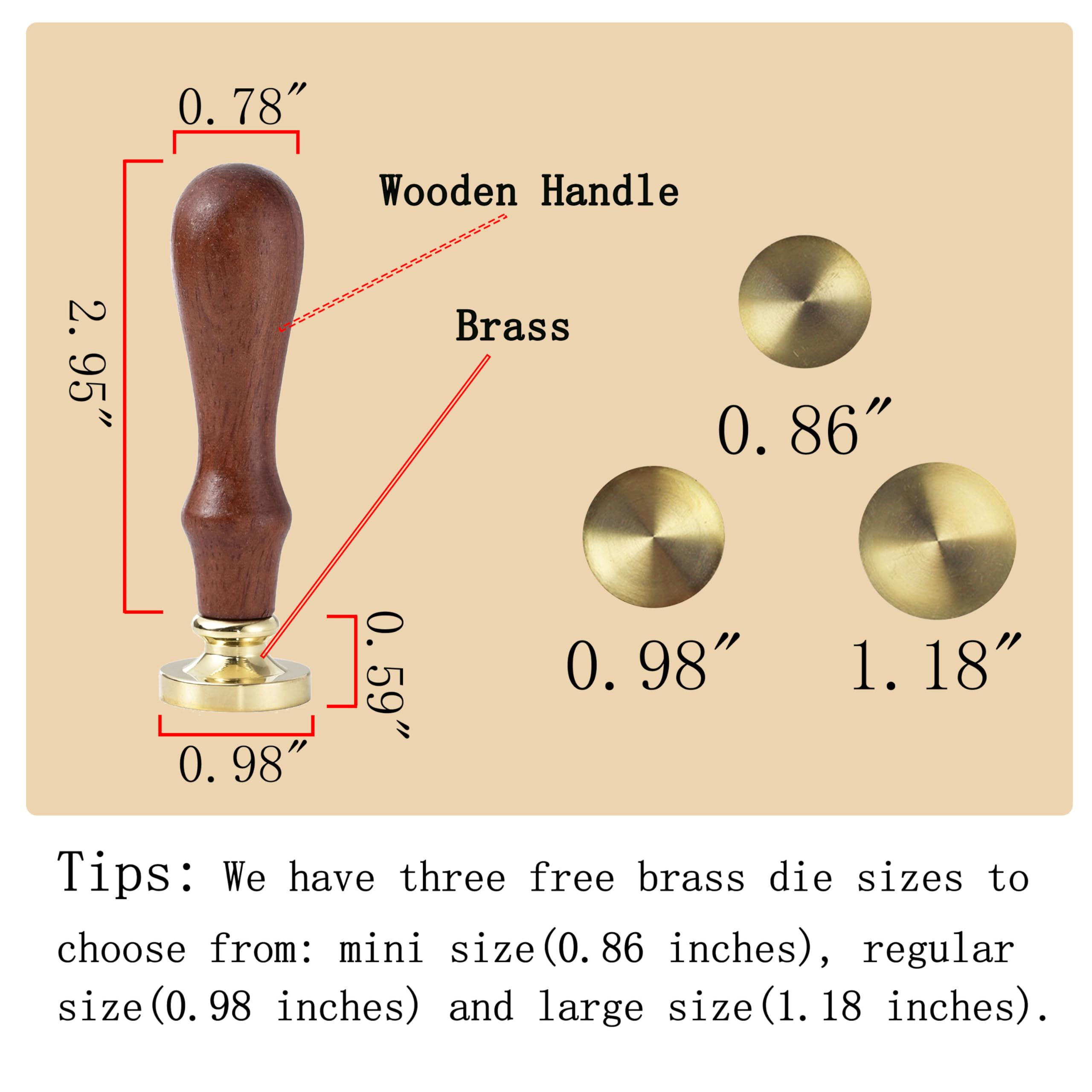 Cachet De Cire Personnalisé Avec Votre Logo - Tampon Rond Laiton, Manche Bois - Pour Enveloppes, Invitations, Cadeaux - Tailles 2/2,5/3 Cm