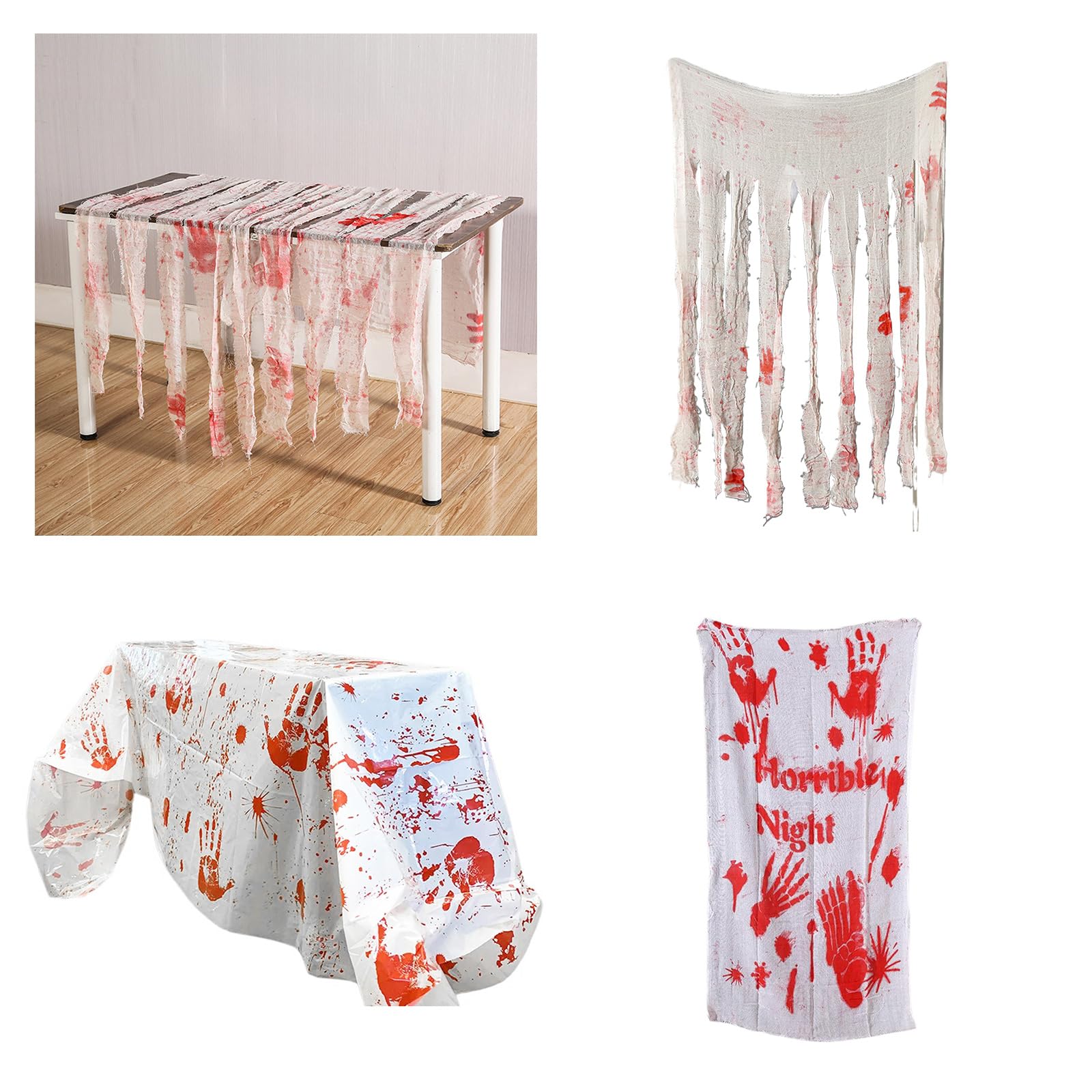 Prépare-toi à faire peur à tes invités avec cette nappe en gaze « ensanglantée » ! En filet blanc avec des taches de rouge qui imitent le sang, elle donne instantanément une ambiance de film d’horreur. Parfaite pour Halloween, une fête déguisée, ou même un escape game maison.