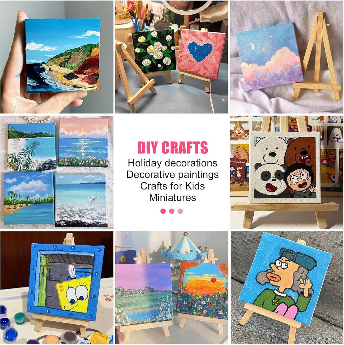 Toile Acrylique Huile Aquarelle Mini Toile à Peindre 18,5x12 Cm Avec Chevalet En Bois - Toile Pré-tendue Sur Châssis, Prête à Décorer - Idéal Enfants, Bricolage, Décoration De Table Mini Toile Chevalet