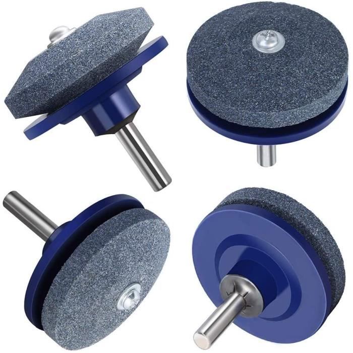 4 Aiguiseurs Lame Tondeuse Bleus - Pour Perceuse, Corindon Double, 50x55 Mm, Affûtage Outils De Jardin