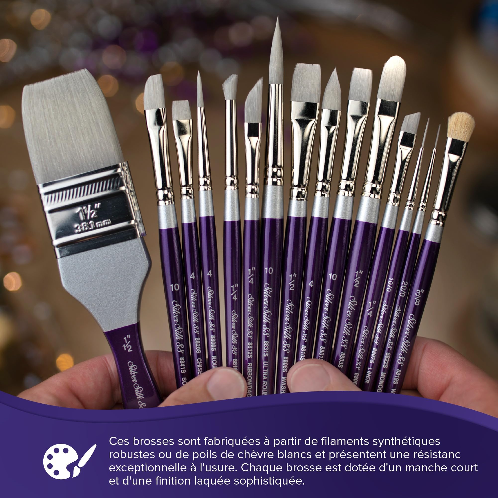 Si tu pratiques l'aquarelle et que tu cherches un pinceau polyvalent, de qualité et qui garde bien la couleur, le pinceau plat Black Velvet de Silver Brush est un excellent choix ! Ce modèle 3008S en taille 1/2 pouce (environ 1,27 cm) est idéal pour les fonds, les lavis larges, les feuilles ou les paysages. Sa particularité ? Il combine des poils naturels d'écureuil petit-gris (très doux et absorbants) avec des fibres synthétiques noires (résistantes et précises). Ce mélange permet de retenir une bonne quantité de peinture tout en offrant un contrôle exceptionnel pour les détails, les contours et les textures. Le manche court laqué noir est agréable en main et se termine en biseau, pratique pour gratter ou créer des effets. Convient parfaitement à l'aquarelle, mais aussi à d'autres médiums à base d'eau sur des surfaces lisses ou texturées. Un pinceau fiable, durable et conçu pour les artistes exigeants, qu'ils soient amateurs ou professionnels. Silver Brush est une marque reconnue pour la qualité de ses outils. Un investissement qui fera la différence dans tes créations !