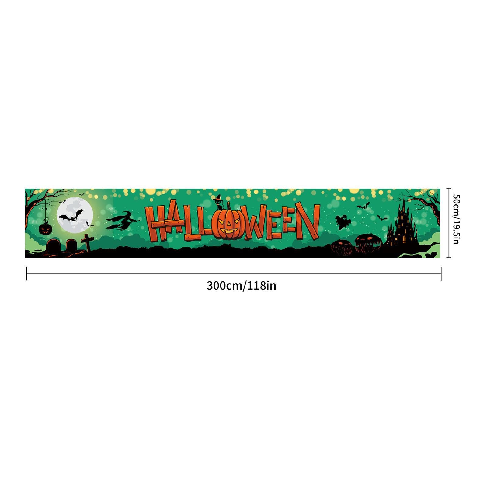 Bannière Halloween 300x50 Cm - Tissu Extérieur - Décoration Jardin Mur Porche - Happy Halloween