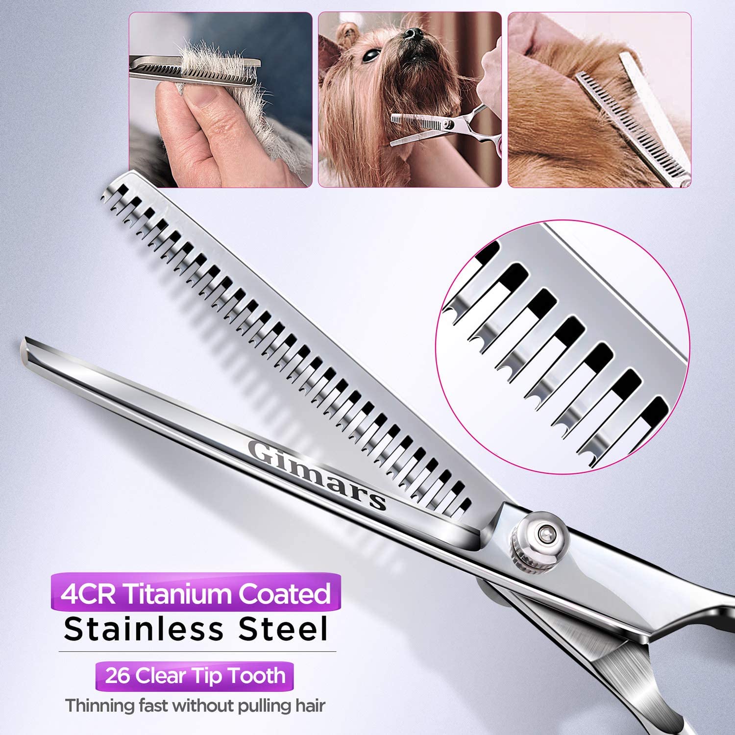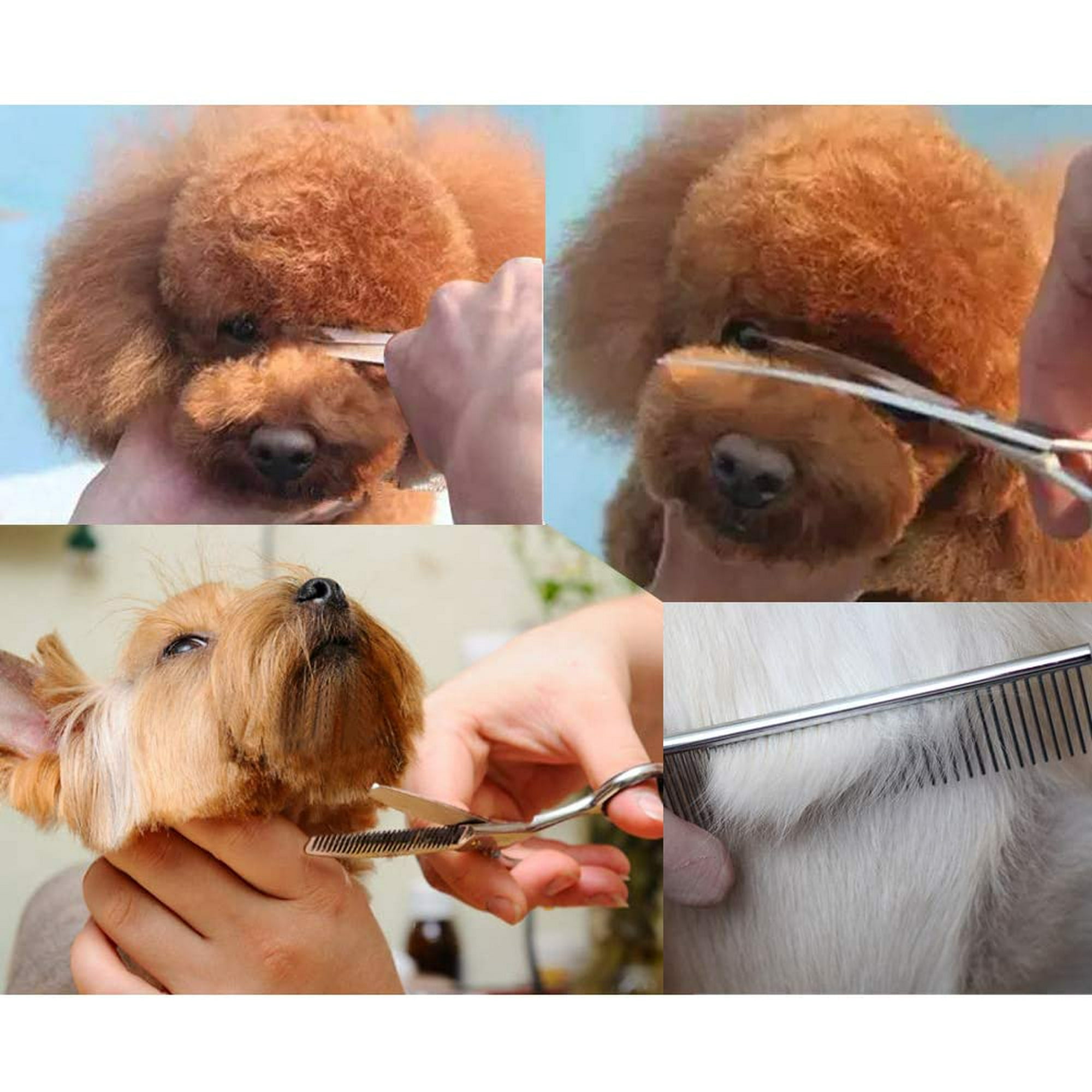 Vous en avez assez des salons de toilettage coûteux ? Ce kit complet est fait pour vous ! Il contient tout ce qu'il faut pour faire un joli brushing à la maison : 3 paires de ciseaux (droit, courbe et effilant de 17,5 cm), un peigne spécial animaux et un chiffon de nettoyage. Les ciseaux sont en acier inoxydable tranchant et durable, et surtout, ils ont une pointe ronde pour éviter de blesser votre animal par accident, même si vous n'êtes pas un pro. La poignée est ergonomique pour plus de confort. Parfait pour couper, effiler et coiffer les poils longs de votre chien ou chat. Le tout se range facilement dans la jolie trousse en cuir fournie. Un indispensable pour tous les propriétaires d'animaux qui veulent prendre soin de leurs compagnons en toute sécurité et sans stress !
