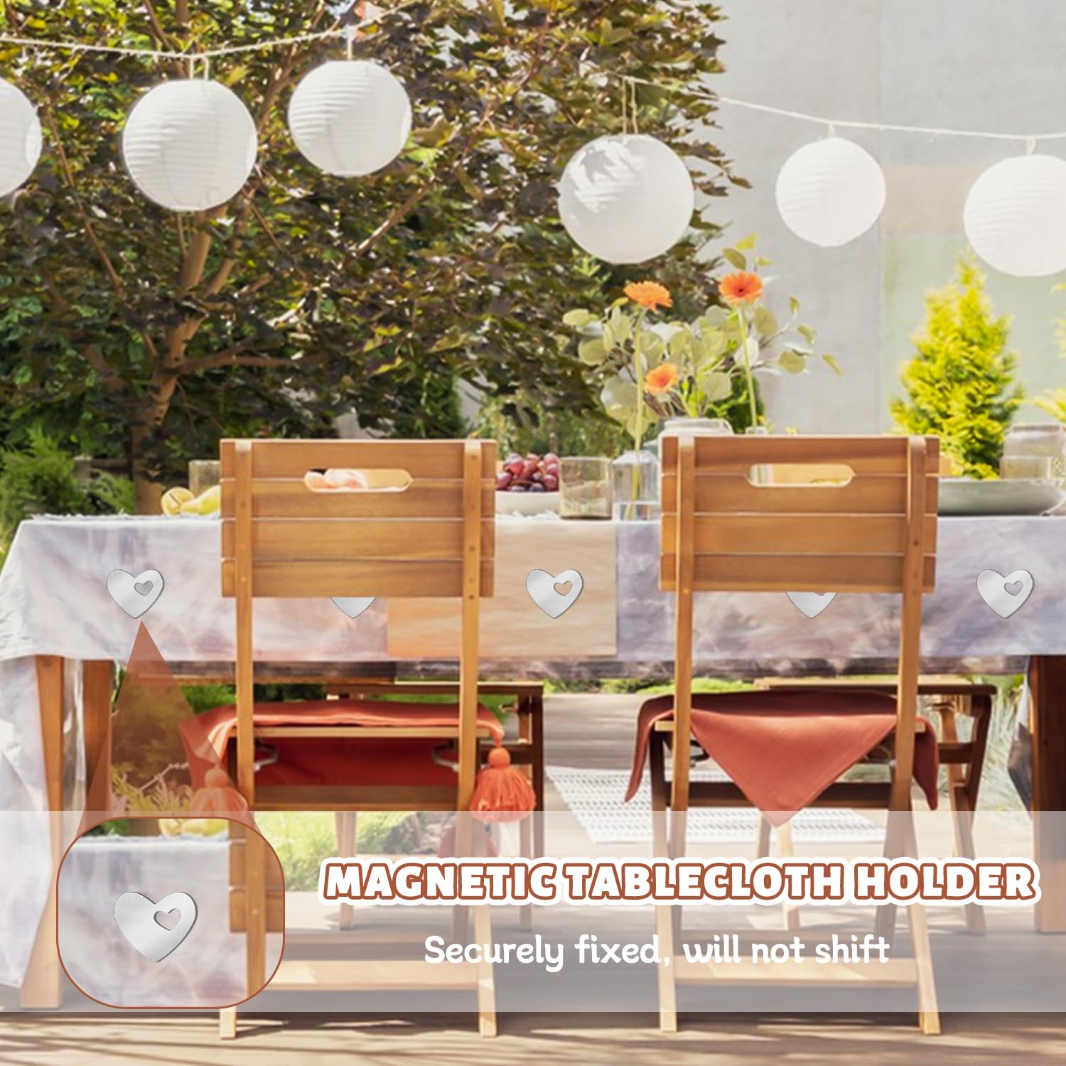 Envie de profiter d'un repas en terrasse sans que votre nappe ne s'envole à la moindre brise ? Ce lot de 8 pinces lestées est la solution ! Chaque pince en métal de haute qualité est équipée d'une bille en acier lourde pour maintenir fermement la nappe, même par vent fort. Design minimaliste et finition argentée, discrète et élégante. Installation rapide : vissez la bille, accrochez la pince au bord de la nappe, c'est tout ! Réutilisables à l'infini. Parfaites pour les garden-parties, les mariages en extérieur, les pique-niques, les buffets ou simplement pour fixer une nappe sur une table de jardin. Plus besoin de courir après les verres renversés !