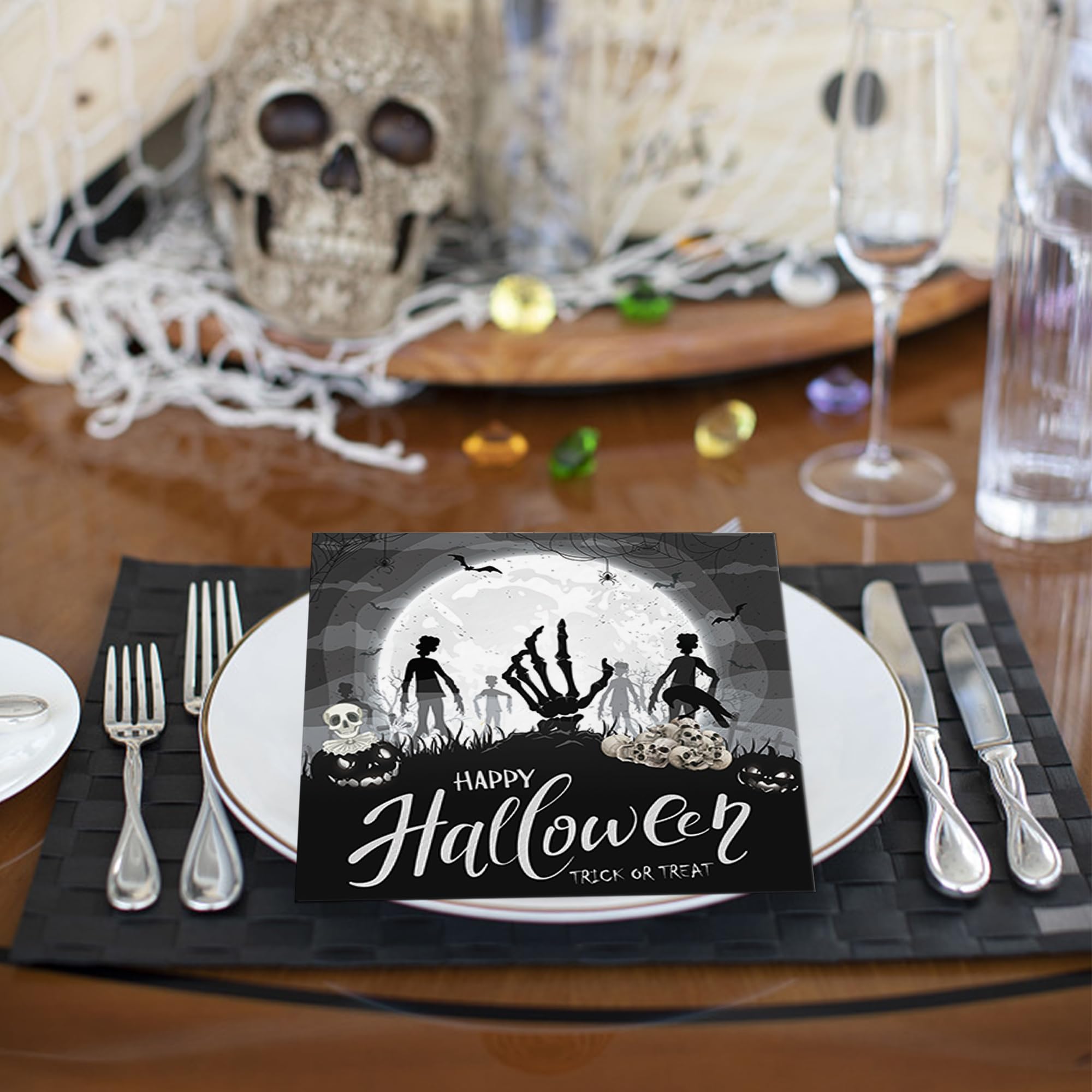 Pour donner une ambiance terrifiante (mais fun !) à votre table d'Halloween, ces serviettes en papier sont parfaites. Le lot comprend 40 serviettes carrées de 33x33 cm chacune, avec de jolis motifs imprimés en noir sur fond orange : vous y trouverez des fantômes, des chauves-souris, des citrouilles et des châteaux hantés. En papier de qualité, elles sont assez épaisses, douces et absorbantes pour un usage pratique pendant le goûter ou le repas de fête. Elles s'accordent facilement avec d'autres décorations (nappes, assiettes, ballons) et sont idéales pour une fête d'enfants, une soirée entre amis ou même une décoration de buffet. Le design est vif et amusant, et le prix est très raisonnable pour la quantité. Un essentiel jetable mais stylé pour réussir votre décoration de table Halloween sans se ruiner !