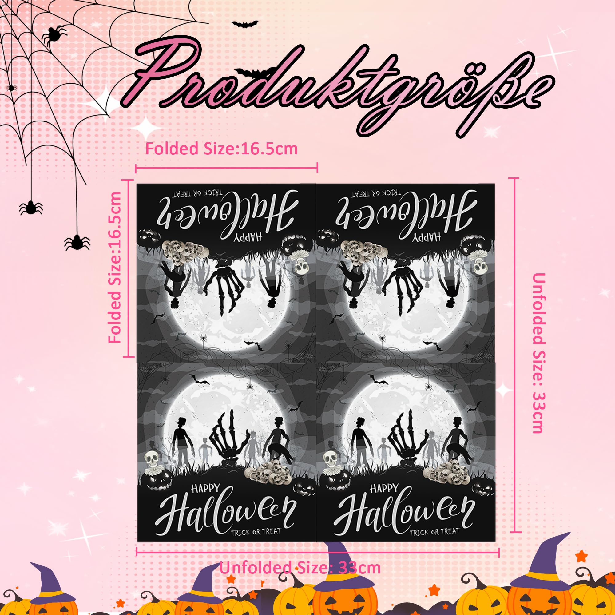 40 Serviettes De Table Halloween 33x33 Cm - Motifs Fantômes, Chauves-souris, Citrouilles Sur Fond Orange
