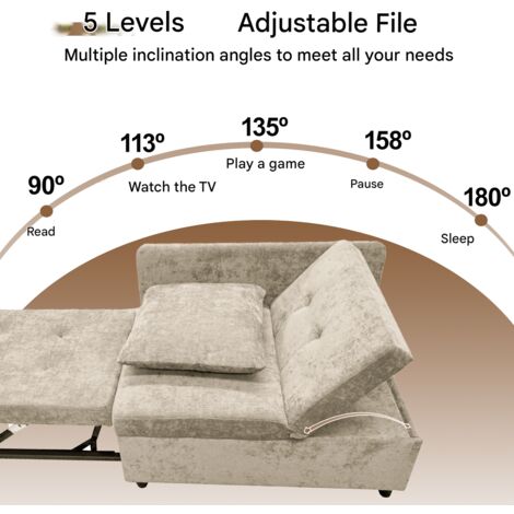 Canapé Convertible Moderne Canapé-lit 2 Places Réglable En Velours Jaune - Dossier Et Accoudoirs Ajustables, Transformable En Lit Canapé-lit Convertible