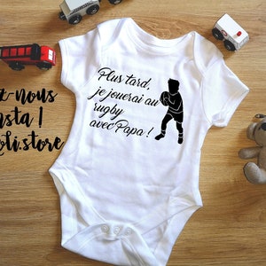 Body Bébé Manches Courtes Rugby Citation Humoristique - Coton Bio, 180 G/m² - Idée Cadeau Naissance Ou Baby Shower