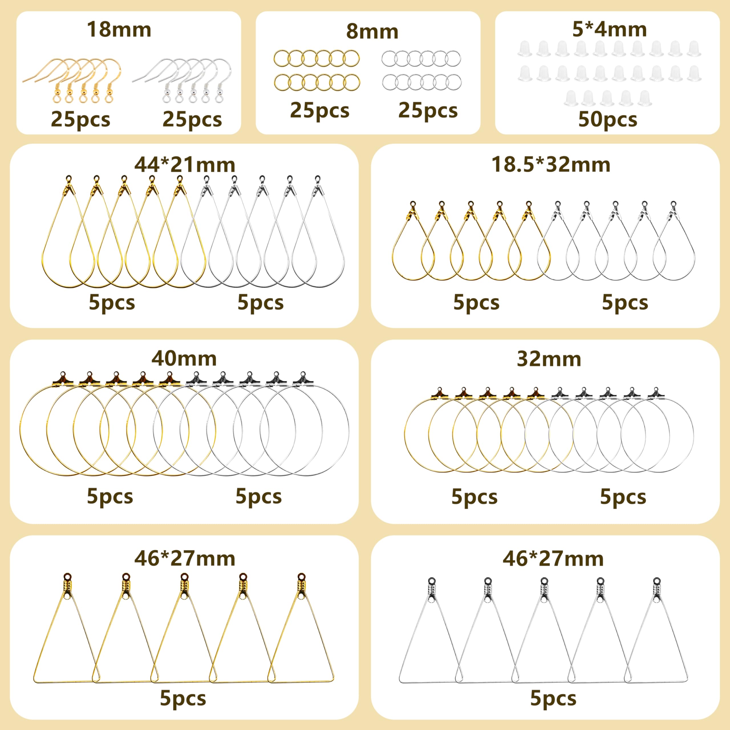 Kit DIY Boucles D'oreilles 200 Pièces - Crochets En Argent 925 Plaqué, Hypoallergénique, Avec Perles Géométriques