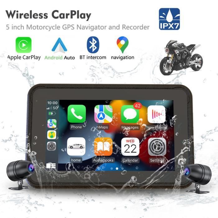 Tu veux rendre ta moto plus connectée et sécurisée ? Cet écran portable de 5 pouces est fait pour toi ! Il se fixe sur ton guidon et se connecte en sans fil à ton iPhone (CarPlay) ou Android (Android Auto) pour afficher la navigation Google Maps/Apple Maps, contrôler ta musique, passer des appels mains libres, et utiliser Siri ou Google Assistant à la voix. L’écran tactile HD (854x480) est lisible même au soleil, et il est certifié IP68 – donc étanche à la pluie, à la poussière, et résistant aux températures extrêmes. Tu peux aussi y insérer une carte TF (jusqu’à 64 Go, non fournie) pour lire de la musique locale. Compatible avec la plupart des motos grâce à son support réglable. Plus besoin de sortir ton téléphone en roulant : tout est sur l’écran, avec une interface simple et des commandes vocales pour rester concentré sur la route. Un accessoire pro pour les motards tech-savvy !