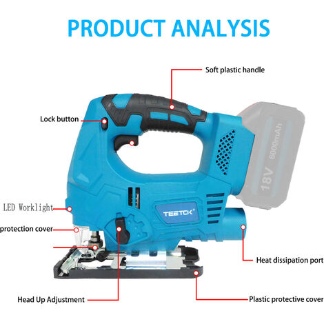 Scie Sauteuse Sans Fil 500W Compatible Batteries Makita 18V - Moteur Brushless - 9 Lames Incluses - Coupe Biseauté ±45° - LED Et Guide