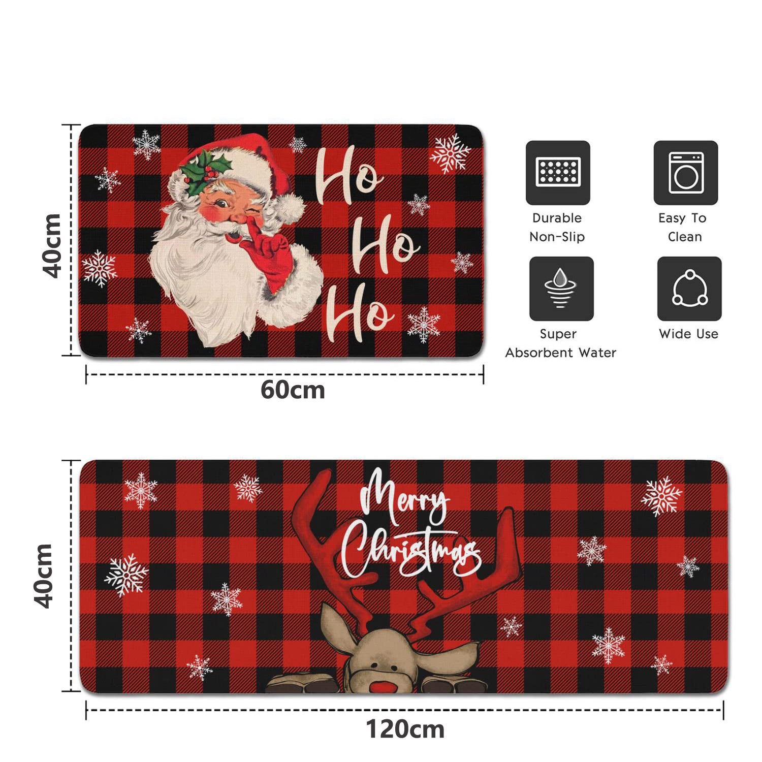 Tapis De Cuisine Humour Noël - Lot De 2 (43x75 Cm Et 43x120 Cm) - Antidérapant - Déco Festive Et Drôle