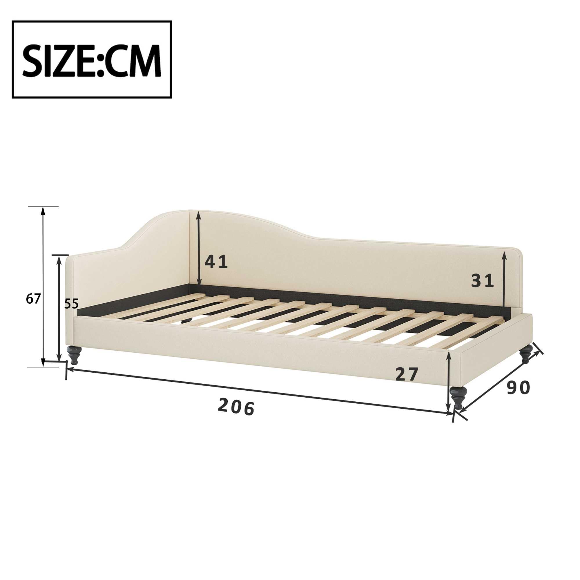 Canapé-lit 90x200 Cm – Design Sobre à Boutons Cloutés, Tissu Lin, Sans Matelas, Livré En 2 Colis (origine Vietnam)