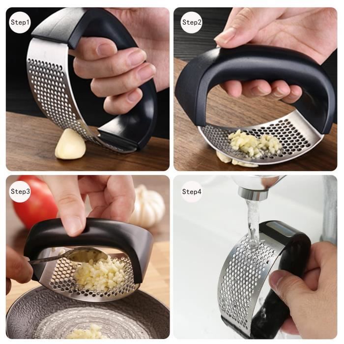 Nettoyage facile : tu peux le passer sous l’eau ou au lave-vaisselle. Solide, il ne se déforme pas. Tu peux aussi l’utiliser pour écraser du gingembre, des noix, des épices… Un ustensile malin qui simplifie la vie en cuisine. À avoir absolument ! 🧄