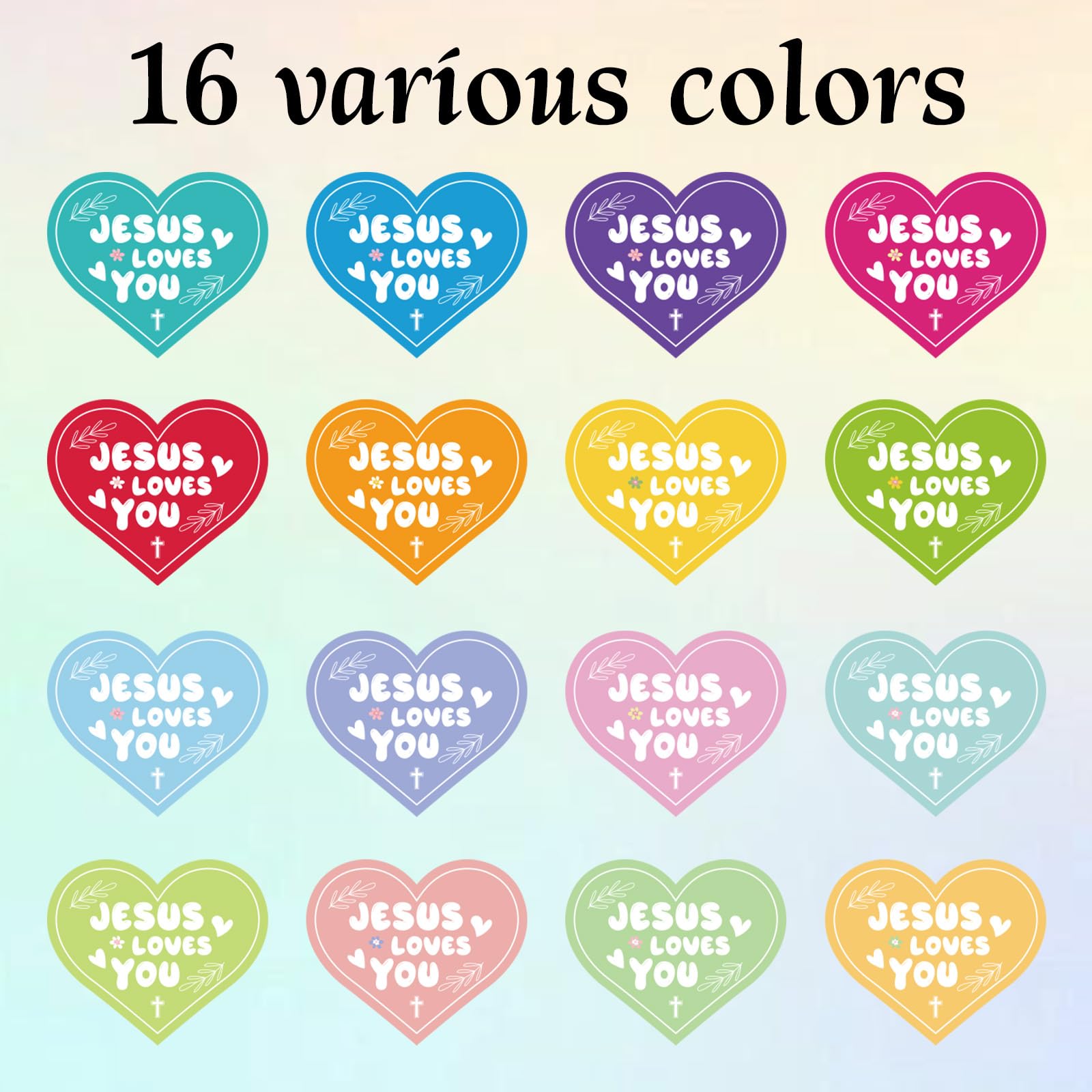 1000 Autocollants "Jésus T'aime" - 16 Motifs Religieux Colorés - En Rouleau, Papier Adhésif Amovible