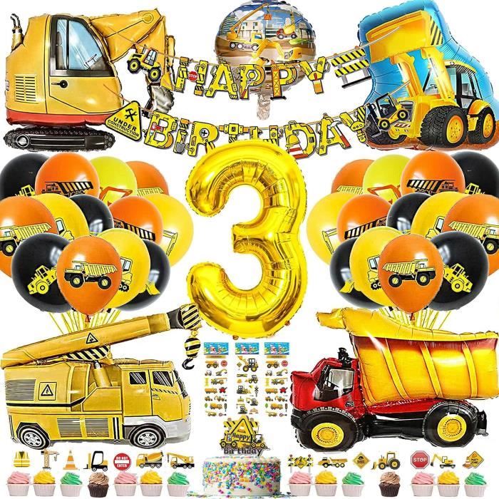 Décoration Anniversaire Thème Chantier 3 Ans Garçon - Kit 64 Pièces Avec Ballons Engins, Bannière, Numéro 3, Autocollants Et Décorations Gâteau
