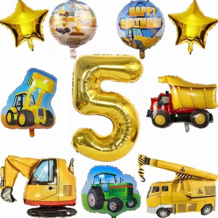 Votre petit garçon fête ses 3 ans et il est fou des camions, pelleteuses et tractopelles ? Ce kit de décoration thème 'chantier' est parfait pour créer une fête inoubliable ! Le pack est très complet : il contient 64 pièces au total. Vous avez une grande bannière 'Joyeux Anniversaire', une autre avec une pelleteuse, 40 ballons en latex avec des motifs d'engins de chantier, 1 beau ballon chiffre 3 en aluminium (très classe), 4 ballons étoiles en aluminium en forme de cœur, 15 petites décorations pour le gâteau (des petits engins en papier à planter), et même 2 feuilles d'autocollants tatouages temporaires sur le thème chantier pour amuser les enfants. Tout est aux couleurs vives et bien imprimé. Avec ça, vous pouvez décorer la salle, la table, le gâteau... et créer une vraie ambiance de fête 'chantier'. Les ballons peuvent être gonflés à l'air ou à l'hélium pour flotter. Un kit économique et ultra pratique pour les parents qui veulent une fête réussie sans passer des heures à chercher chaque élément séparément. Parfait pour un anniversaire de 3 ans, mais aussi pour un petit fan de chantier quel que soit son âge !