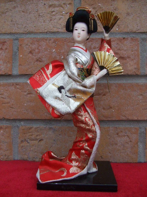 Lot De 3 Statuettes Kawaii Geisha Japonaise - 25 Cm - Décoration D'Intérieur En Tissu Satin Et Gypse - Collection Belle Girl