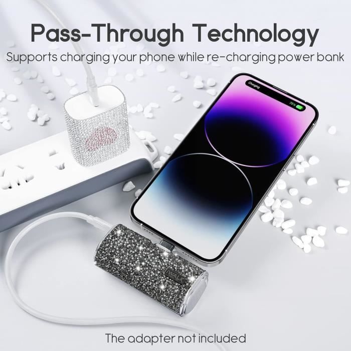 Votre iPhone tombe en batterie en milieu de journée et vous n'avez pas de câble sous la main ? Cette mini batterie externe Kuulaa est la solution ! Ultra compacte (comme un rouge à lèvres), elle se glisse dans la poche ou le sac à main. Sa particularité : elle se branche directement sur votre iPhone (pas besoin de câble !) grâce à sa fiche Lightning intégrée. Elle est compatible avec la plupart des iPhone (6 à 14, SE, etc.) même avec une coque fine (jusqu'à 4,5mm d'épaisseur). Capacité 4500mAh, suffisante pour recharger votre iPhone au moins une fois. Technologie de charge rapide 12W PD – plus rapide qu'un chargeur standard. Elle supporte aussi la charge « pass-through » : vous pouvez recharger la batterie et votre iPhone en même temps. Batterie lithium-polymère avec protections contre les surcharges. Autorisée en avion, elle est parfaite pour les voyages, les déplacements pros, ou les sorties. Dans la boîte : la batterie, un câble USB-C, un étui de protection. Plus jamais à court de batterie au mauvais moment !