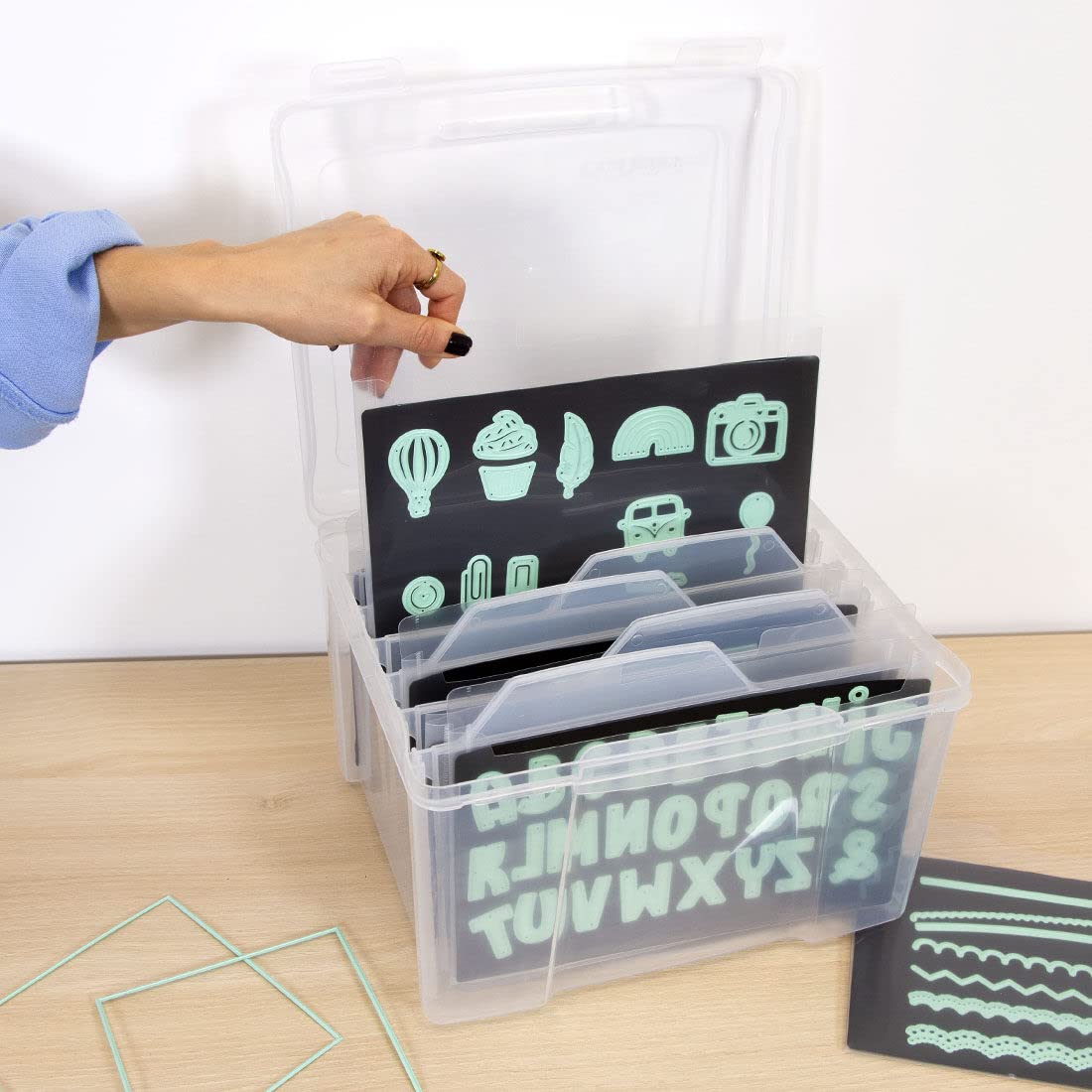 Cette boîte Craftelier, c’est le must-have pour toutes celles (et ceux) qui font du scrapbooking ou des travaux manuels ! Avec ses 10 compartiments, on range facilement les petits trésors : rubans, boutons, perles, tampons, washi tape, bref, tout ce qui traîne et qu’on ne retrouve jamais quand on en a besoin. Dimensions de la boîte : 26,5 x 17,8 x 4,2 cm. Chaque compartiment mesure environ 5,1 x 8,1 cm. Le couvercle est transparent, donc on voit tout de suite ce qu’il y a dedans, plus besoin d’ouvrir pour chercher. Et en plus, elle est empilable, donc on peut en superposer plusieurs pour optimiser l’espace sur l’étagère. Disponible en blanc (comme ici), mais aussi en turquoise et rose pastel si vous préférez de la couleur. Craftelier, c’est une marque spécialisée dans le matériel créatif, donc la qualité est au rendez-vous. Si vous en avez marre du bazar sur votre table de bricolage, cette boîte va changer votre vie ! Idéale aussi pour ranger les petits accessoires de couture, les perles à bijoux, ou même les vis et boulons dans l’atelier. Un produit pratique, solide et bien pensé.