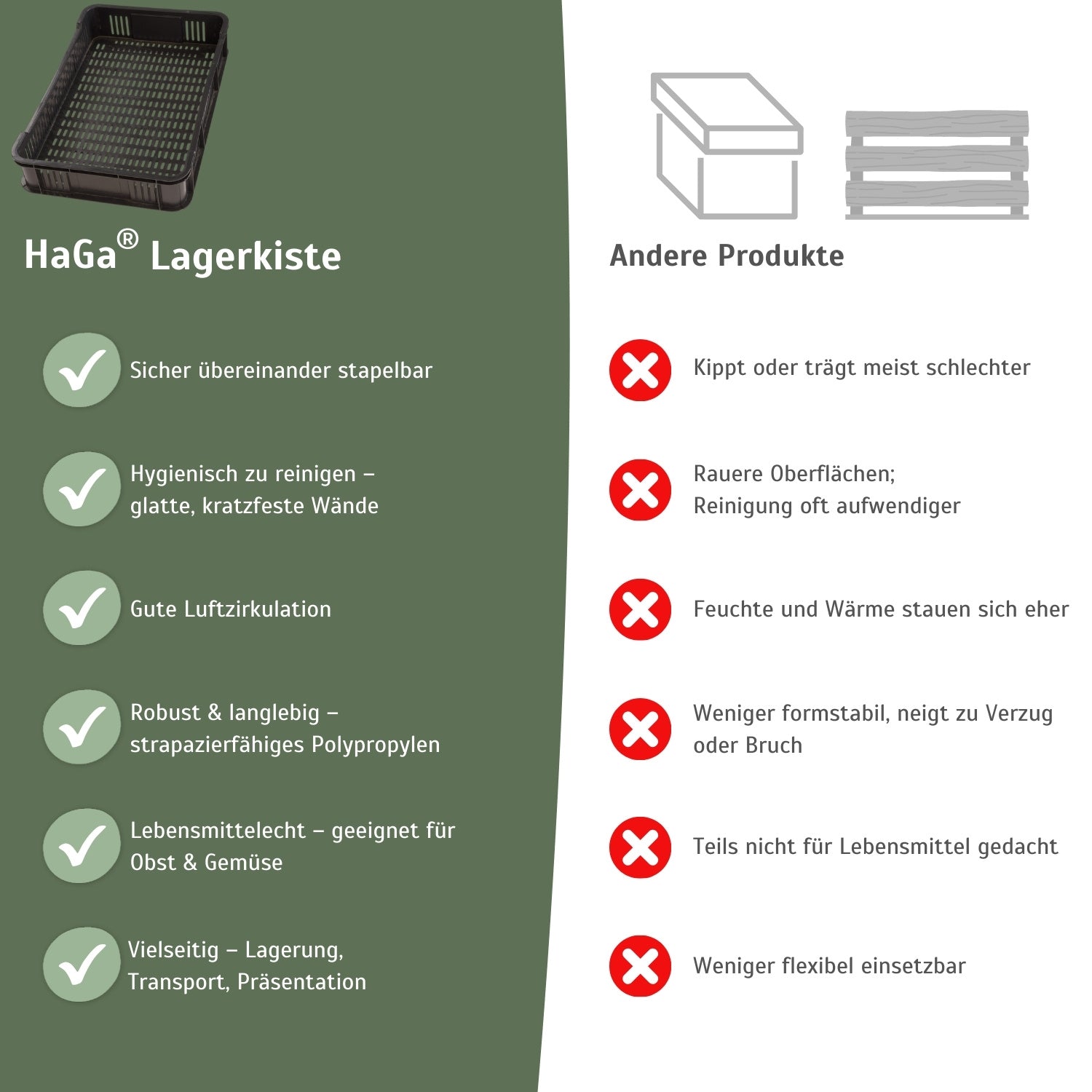 Grâce à sa conception ouverte, vos produits respirent mieux et restent frais plus longtemps. Elle est aussi idéale pour présenter vos légumes sur un marché, avec un look propre et professionnel.