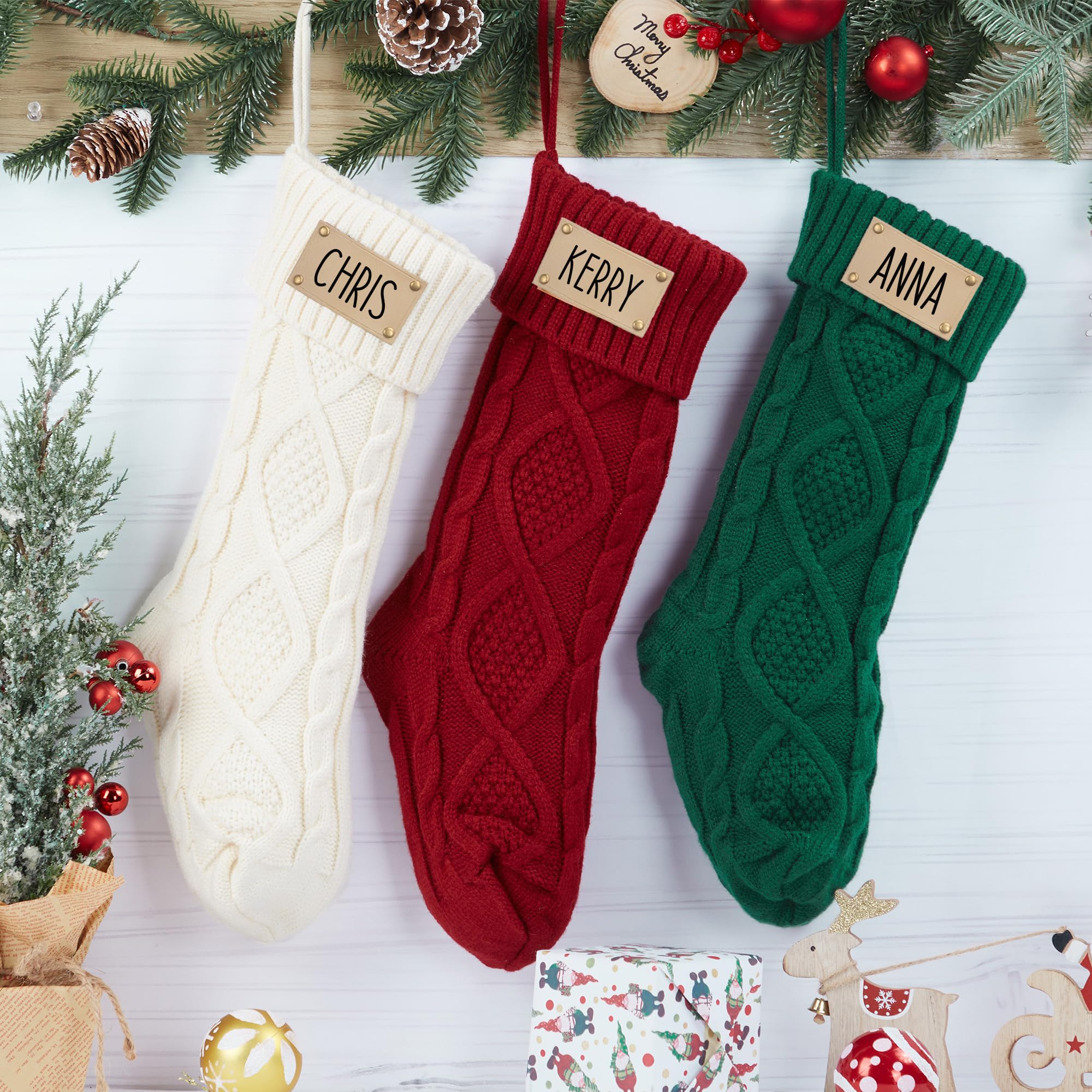 Chaussette De Noël Personnalisable 18 Pouces - Tricot Torsadé Rouge, Avec étiquette Nom En Bois, Pour Cheminée, Sapin