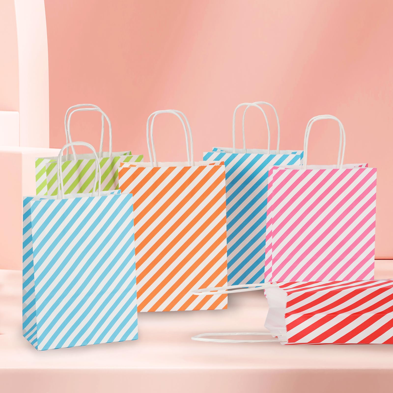 Lot De 40 Sacs Cadeaux Anniversaire Enfants - Motifs Vagues, Pois, Rayures - Papier Kraft Avec Autocollants - 24x13x8 Cm