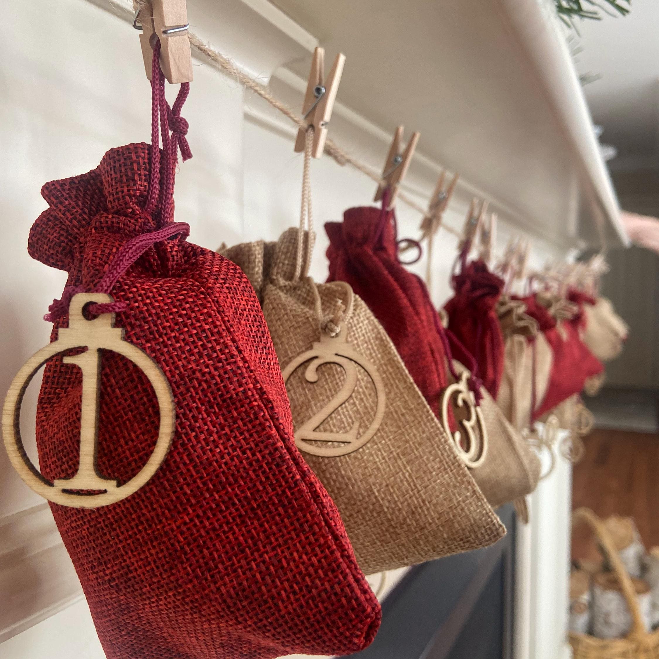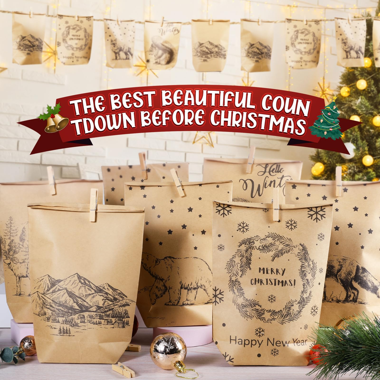 Calendrier De L'Avent DIY 2025 - 24 Sacs En Papier Kraft + Autocollants + Pinces En Bois - À Remplir Soi-même