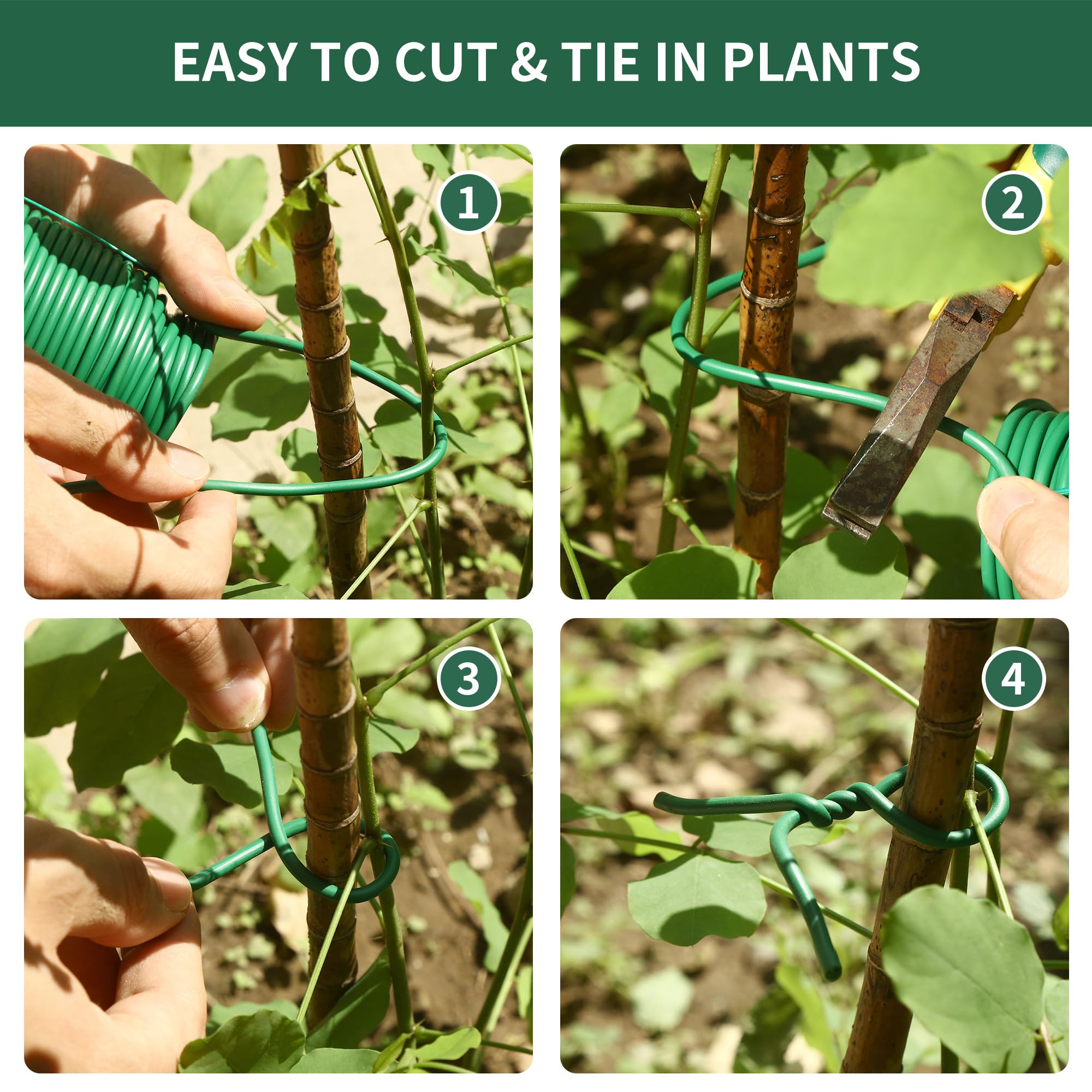 Fil Gainé Vert Souple Fil De Jardin Vert 50 M - Revêtu Plastique, Antirouille, Avec Cutter, Pour Plantes, Câbles, Fixation Fil Jardin Attacher Plantes