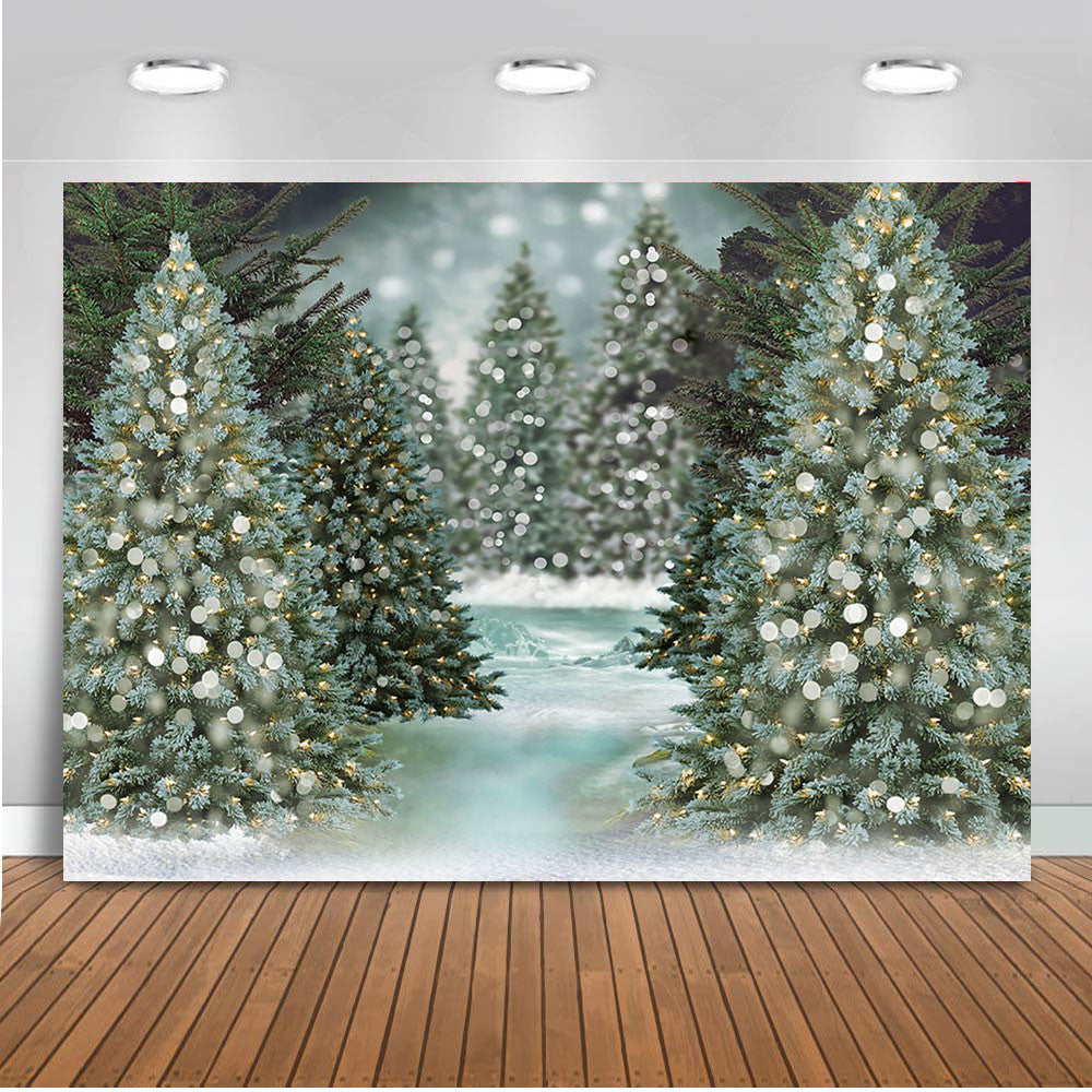 Fond Studio Photo Sapin Neige Toile De Fond Noël Pôle Nord - 210 X 150 Cm - Décoration Photographie Sapin De Noël, Stand, Fête - Tissu Vinyle Haute Résolution Fond Vinyle Imprimé