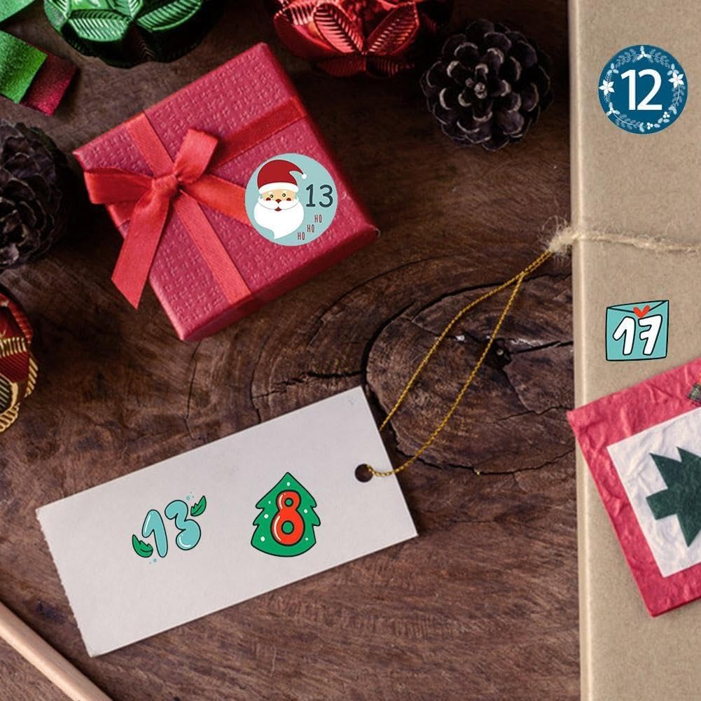 Autocollants Numérotés Pour Calendrier De L’Avent - 24 Stickers Décoratifs Noël, Père Noël, Sapin, Bonhomme De Neige, 28x19 Cm