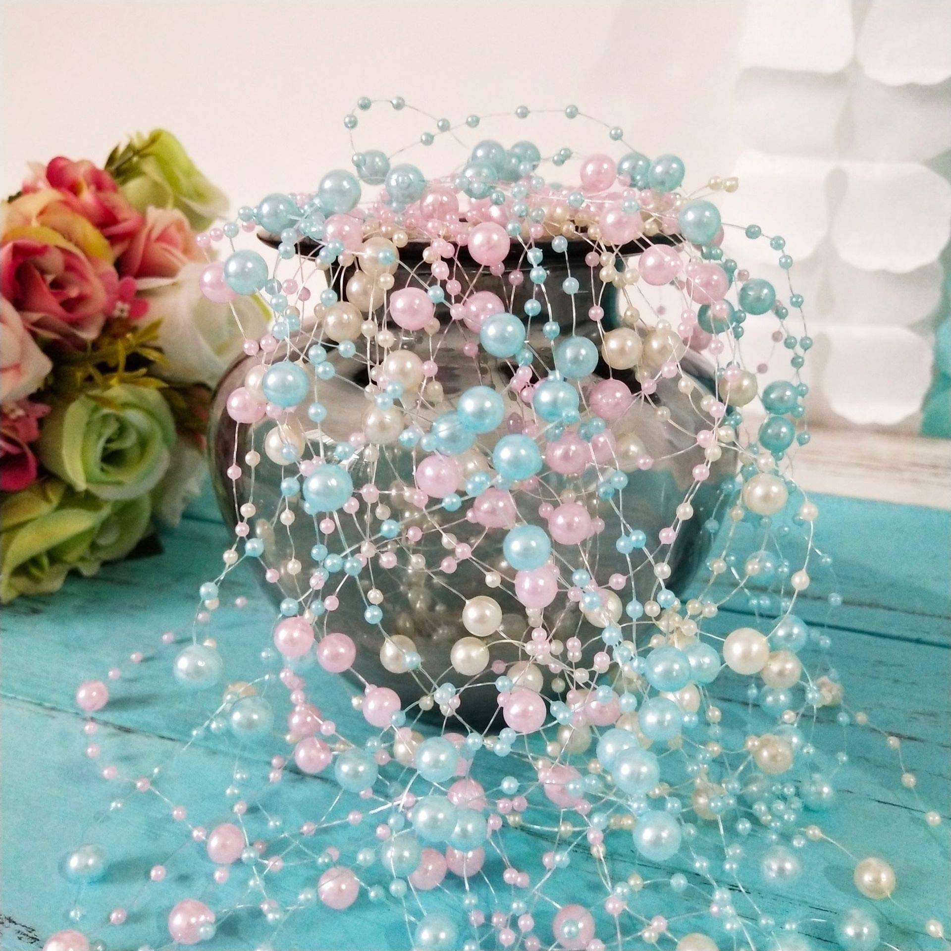 Guirlande De Perles Artificielles - Lot De 2 X 5 Mètres - Perles Roses Dorées (mix 3mm Et 8mm) - Pour Déco, Mariage, DIY, Bijoux