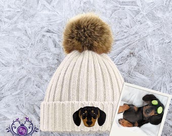 Bonnet Tricoté Brodé Motif Teckel Aretas - Cadeau Pour Propriétaire De Chien, Homme/femme - Taille Réglable 55-62 Cm
