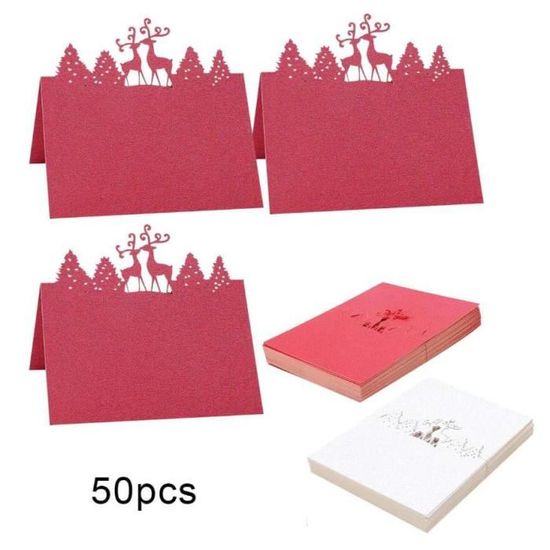 Tu organises un repas de Noël, une fête de fin d'année ou même un mariage d'hiver ? Ces 50 marque-places en papier blanc vont sublimer ta table ! Ils sont joliment découpés avec des motifs festifs : rennes, bonhommes de neige, flocons... C'est vraiment élégant et ça donne tout de suite une ambiance chaleureuse. Chaque carte fait environ 10 cm de haut sur 8,4 cm de large (une fois pliée en tente), donc c'est une taille pratique. Tu peux écrire le nom de tes invités au stylo ou au feutre fin, c'est parfait pour un plan de table bien organisé. En plus, comme c'est en papier, tu peux aussi les utiliser pour des projets DIY ou comme petites cartes de vœux. Avec 50 pièces, tu as de quoi couvrir même un gros événement. Une idée simple et pas chère pour rendre ton repas encore plus spécial. Place-les sur tes assiettes ou autour des verres, et laisse la magie de Noël opérer !