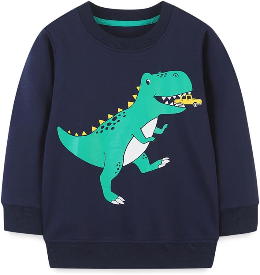 Sweat-shirt Garçon Motif Dinosaure - Col Rond, Manches Longues - Tissu Doux En Polyester - Plusieurs Tailles