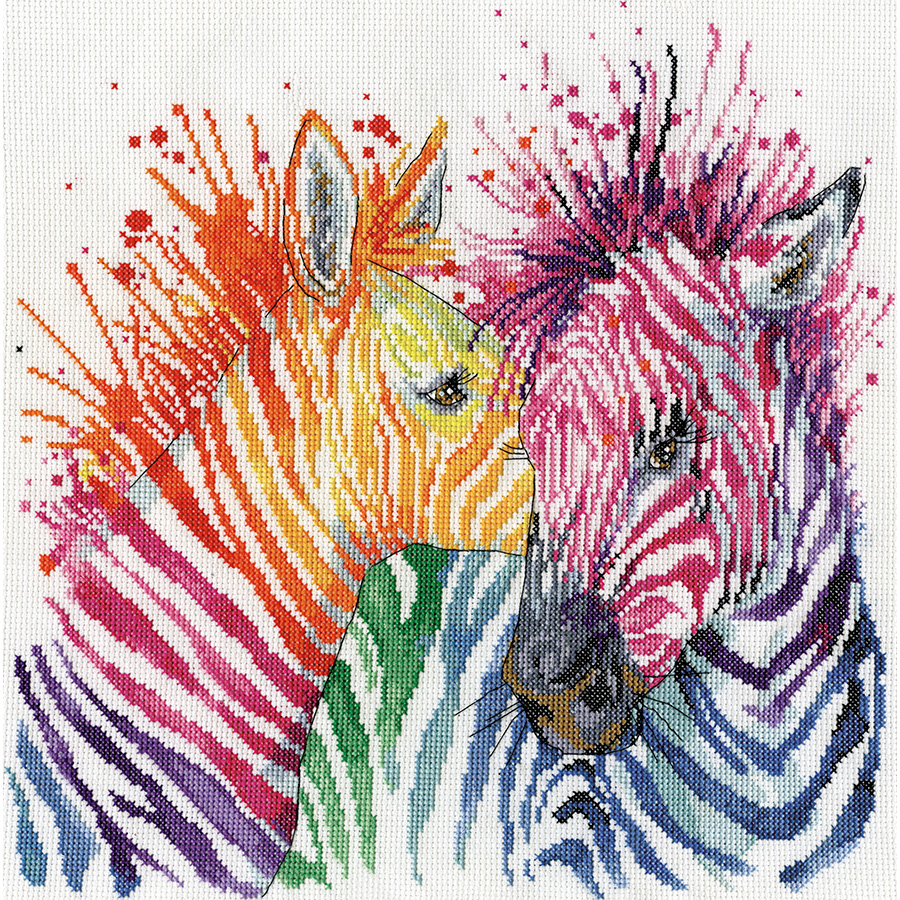 Kit De Broderie Au Point De Croix Design Works - Motif Zèbres Colorés, 30,5 X 30,5 Cm, Complet Avec Instructions