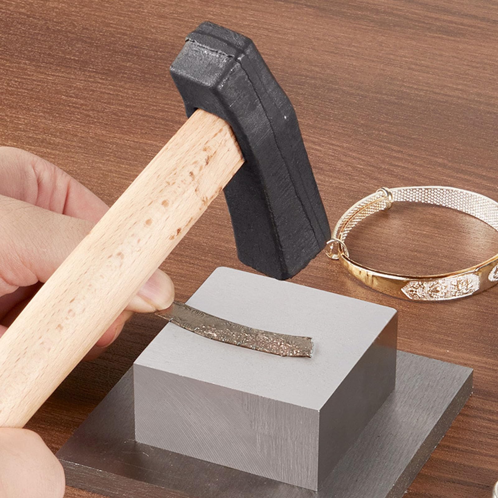 Pour les passionnés de bijoux faits main, ce marteau à texture est un outil génial ! Il permet de créer des motifs sur métal (or, argent, aluminium, cuivre…) pour personnaliser bagues, bracelets, pendentifs. Il existe 12 types de têtes différentes (rayures creuses, ondulations, points…) – à choisir selon l'effet souhaité. La tête est en métal résistant à la rouille, le manche en bois (environ 25,5 cm de long) pour une bonne prise en main. Léger et précis, il est parfait pour les ateliers à domicile ou les professionnels. Vous pouvez réaliser des textures uniques, donner du caractère à vos créations métalliques. C'est aussi un super cadeau pour un artisan ou un débutant en métallerie. Livré avec un marteau (choisissez le motif dans les options). Libérez votre créativité !