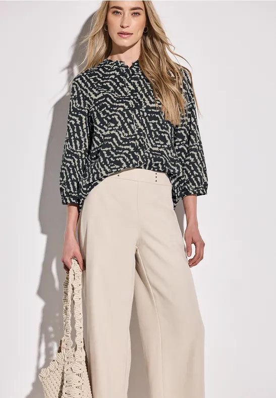 Chemisier Femme Street One Avec Volants - Manches 3/4, Motif Graphique, 100% Coton