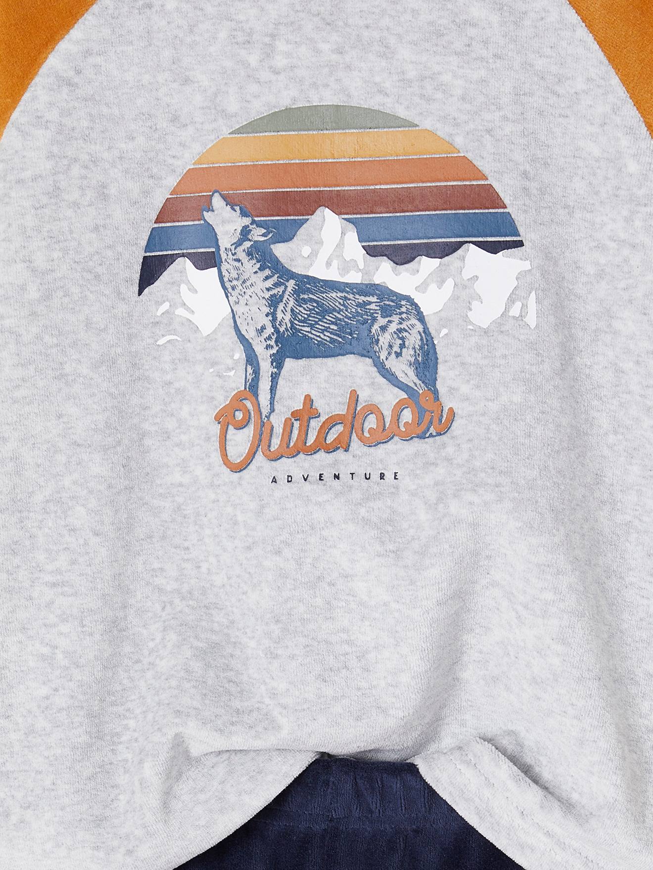 Lot De 2 Pyjamas Garçon Vertbaudet En Velours - Motif Loup, Haut Manches Longues, Pantalon Confortable